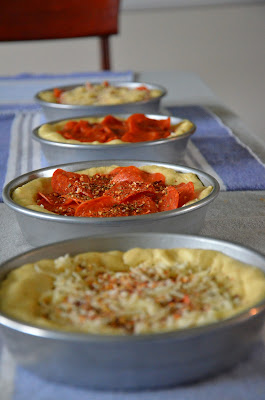 I've never visited any of his restaurants, but I've tried many of his recipes and each one was delicious. Ever since I received the deep dish pizza pans from my sister-in-law, I've been researching various recipes. The ingredients ran the gamut from vegetable oil, cornmeal, honey, yeast, no yeast, etc. Some recipes involved kneading, some involved folding the dough like a letter (I immediately stopped reading that one!). When I found a recipe from a Throwdown episode, I felt confident that I could make an authentic Chicago-style pizza. I trust Bobby, after all.